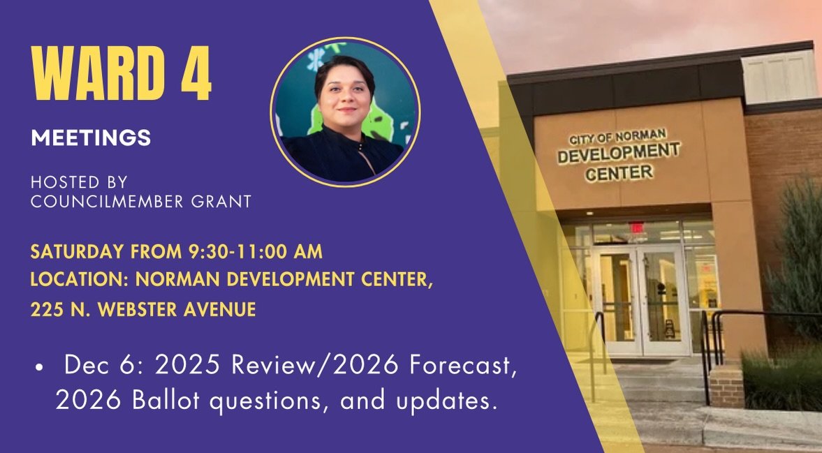 Today, I am proud to announce my intention to seek reelection as the Ward 4 representative on Norman City Council. It has been an honor to serve this community, and I remain deeply committed to providing experienced, dependable, and visionary leadership.